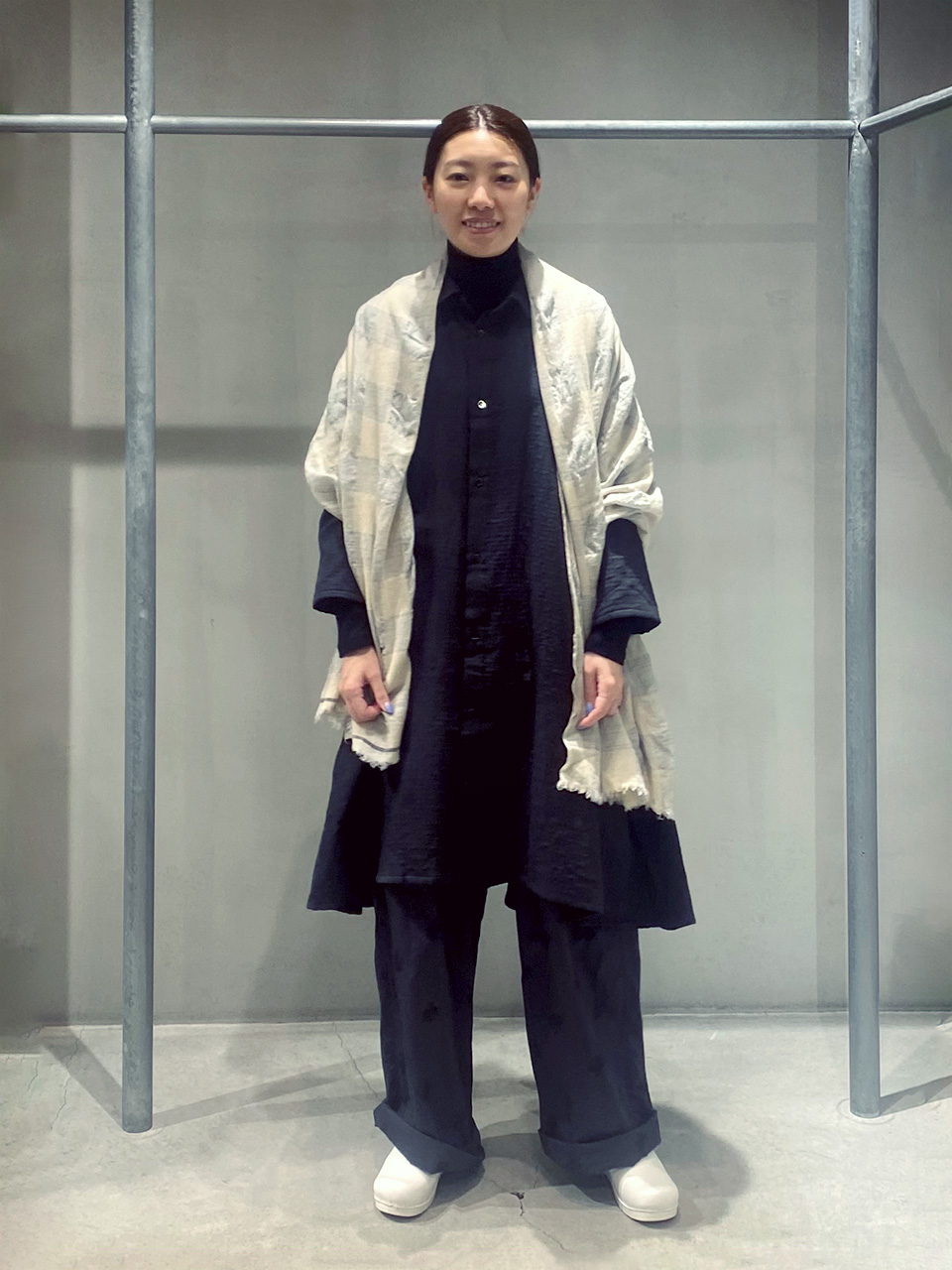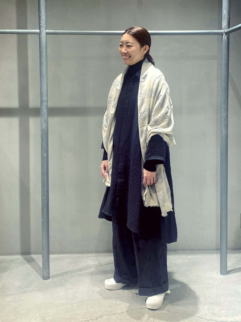 立ち姿も美しいワンピースは、ストールをちょっと羽織って外出にも活躍します。