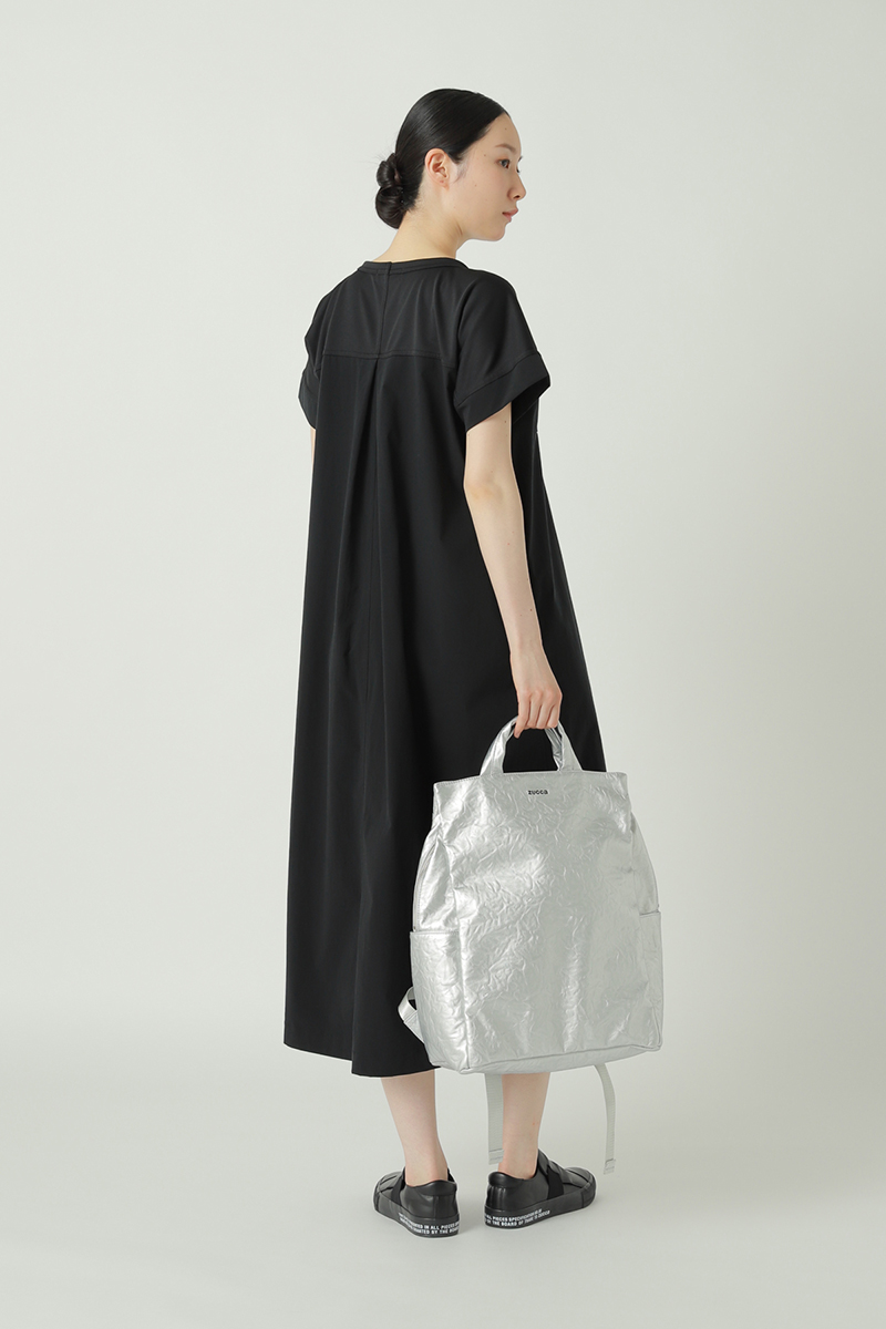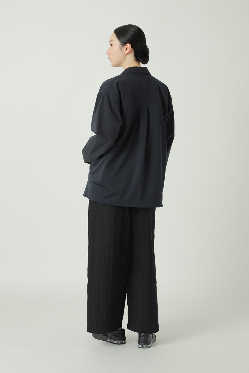 ポリエステルタスラン糸で織り上げた生地は、天然素材のようなマットな風合いと、微細な凹凸が生み出す繊細な陰影が魅力。