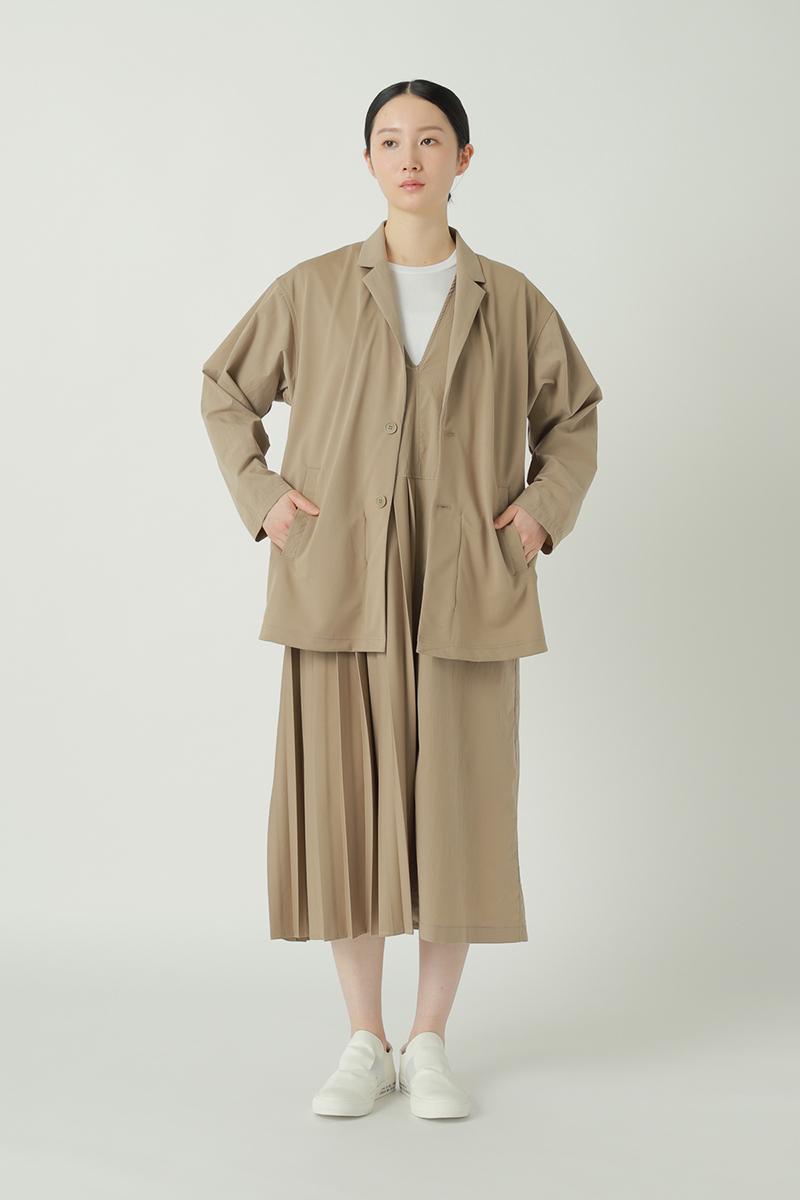 撥水性と防シワ性を備え、日常の動きや天候の変化にもスマートに対応します。